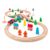 - Komplekt sisaldab kahe vagunit, rööpaid, silda, mänguautot, liiklusmärke, figuure, puid ja elektrivedurit.
